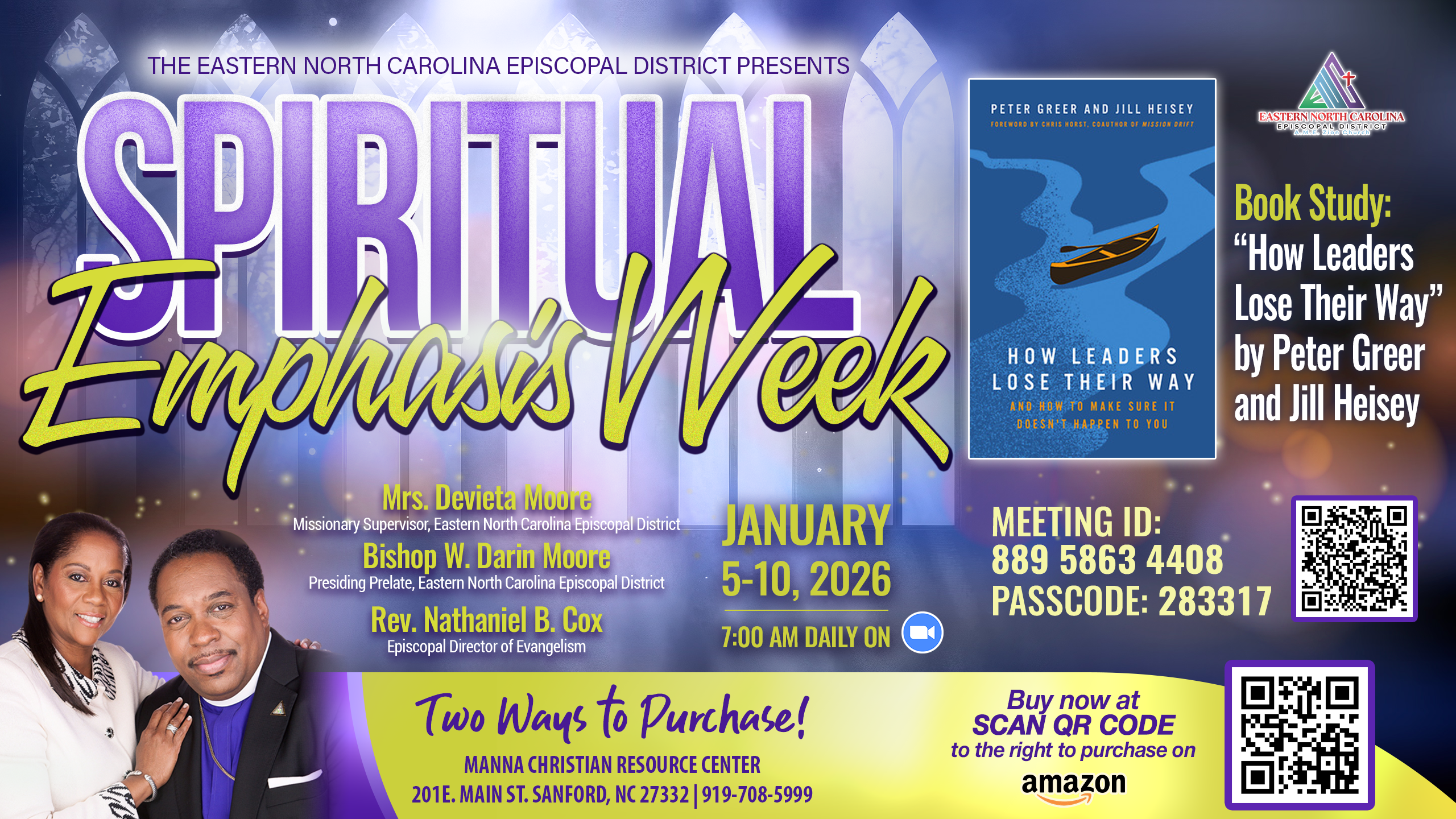 You are officially invited to participate in Spiritual Emphasis Week, hosted by the Eastern North Carolina Episcopal District, January 5–10, 2026, at 7:00 a.m. daily. This year’s emphasis features a district-wide book study of How Leaders Lose Their Way by Peter Greer and Jill Heisey, focusing on faithful leadership, integrity, and spiritual accountability. Participants are...